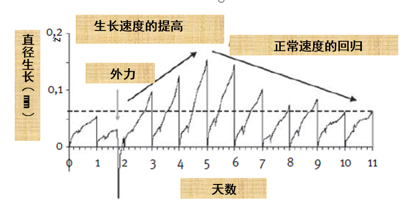 梅教授还给了这样一个实验:大家都知道,林分疏伐后树木的生长会发生变化,那么主干受风摆动的单株,会有什么变化?